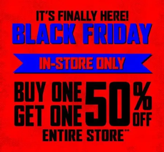 Hurry in and buy one, get one 50% off everything in store for a limited time.