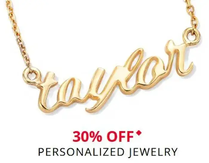 Limited time! Shop in store and get 30% off personalized jewelry.