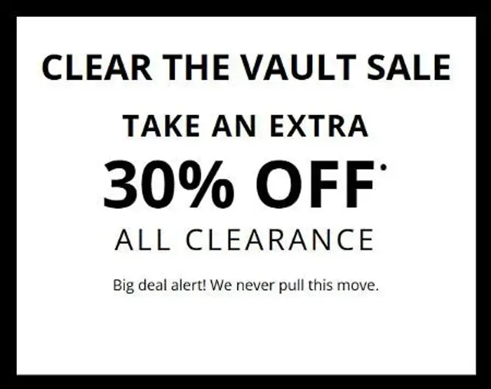 Clear the Vault Sale is here! Shop in store and take an extra 30% off all clearance.